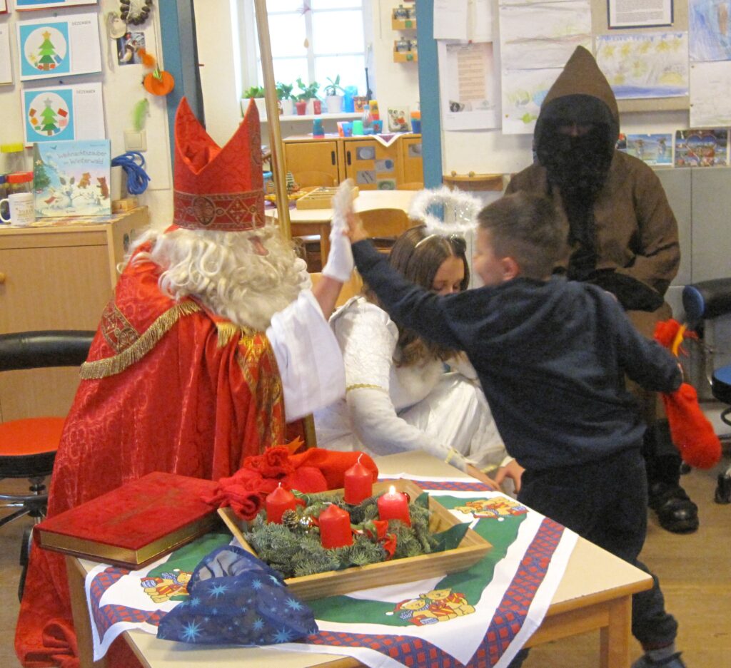 Natürlich werden auch Tanten und Onkel, Eltern und Großeltern mit Lob oder Tadel bedacht, sofern für sie ein Blatt vorbereitet wird. Auch können Erwachsene zum Spielen eines Lieds auf dem Klavier oder der Gitarre aufgefordert werden, wenn der Nikolaus darüber vorab informiert wurde….